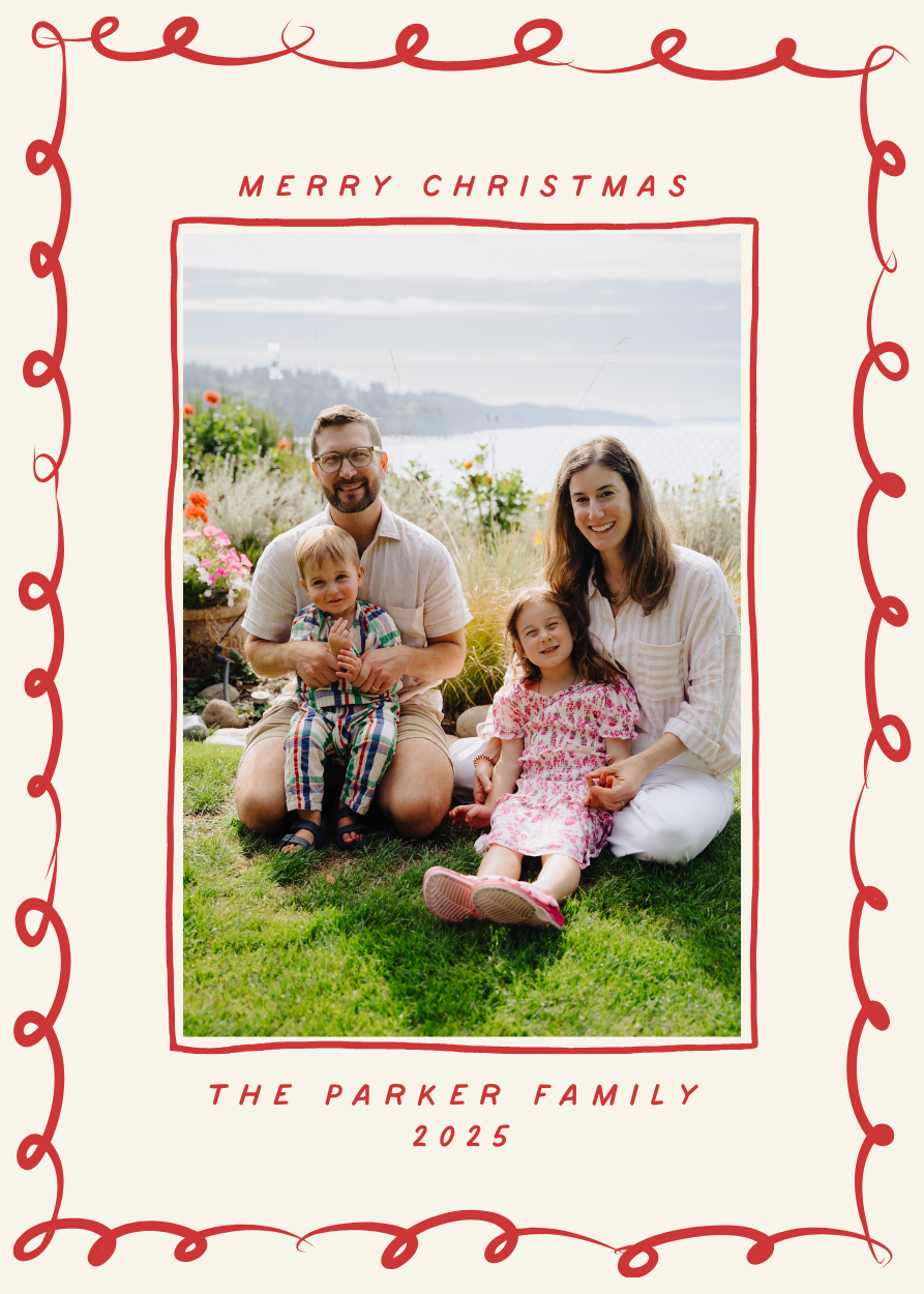 I design your holiday card with hero photo and QR code. You choose from 6 styles, provide your message, approve the design, then upload your design straight to Minted or printer of your choice.